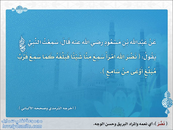 نضر الله امرأً سمع شيئاً فبلغه كما سمع فرب مبلغ أو