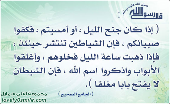 إذا كان جنح الليل أو أمسيتم فكفوا صبيانكم فإن الشي