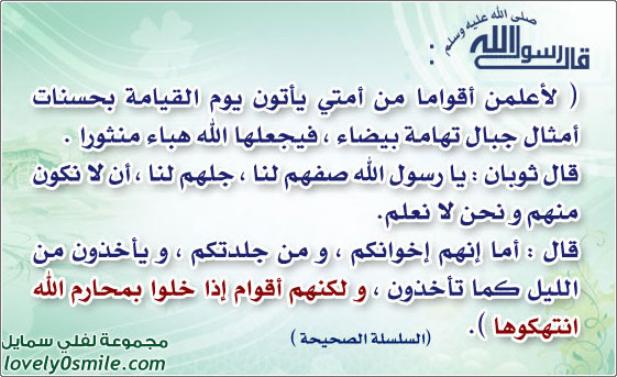 لأعلمن أقواماً من أمتي يأتون يوم القيامة بحسنات أم