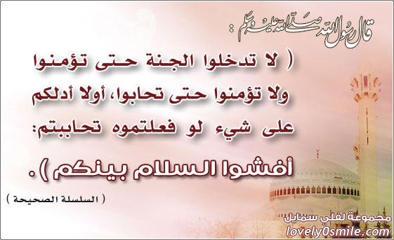 لا تدخلوا الجنة حتى تؤمنوا ولا تؤمنوا حتى تحابوا أ