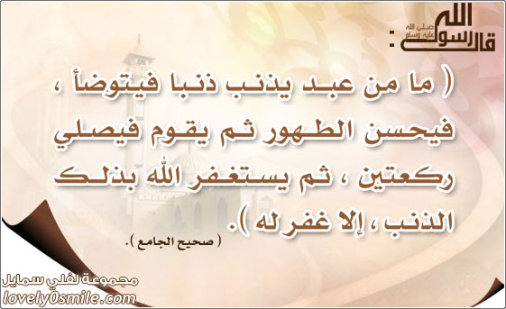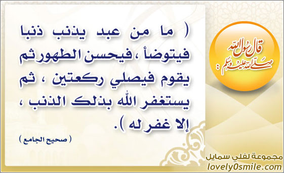 ما من عبد يذنب ذنبا فيتوضأ فيحسن الطهور ثم يقوم في