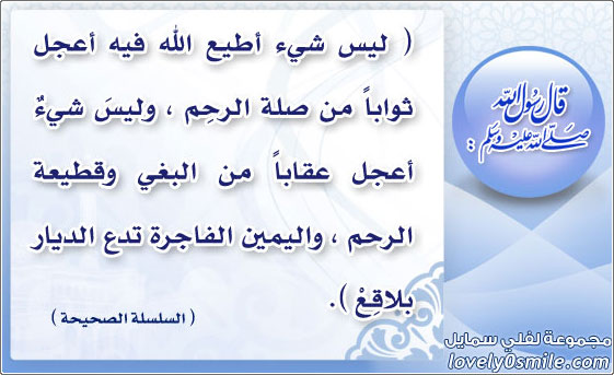 ليس شيء أطيع الله فيه أعجل ثواباً من صلة الرحِم ول