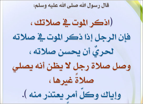 اذكر الموت في صلاتك فإن الرجل إذا ذكر الموت في صلا