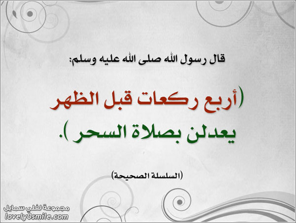 أربع ركعات قبل الظهر يعدلن بصلاة السحر
