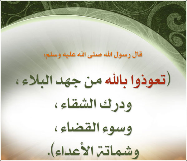 تعوذوا بالله من جهد البلاء ودرك الشقاء وسوء القضاء