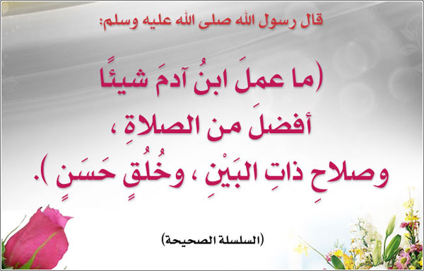 ما عمل ابن آدم شيئاً أفضل من الصلاة وصلاح ذات البي