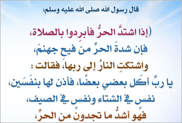 إذا اشتد الحر فأبردوا بالصلاة فإن شدة الحر من فيح