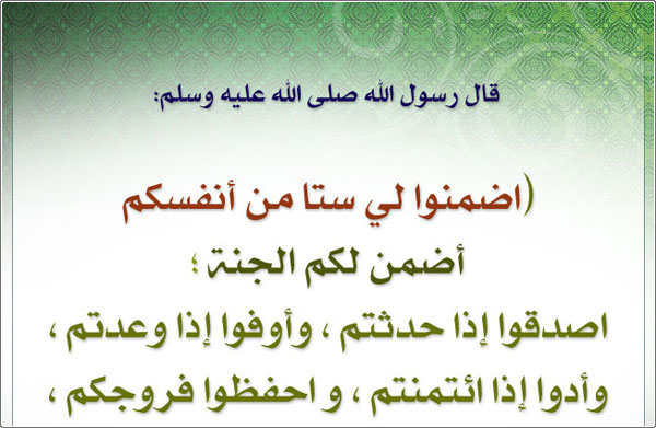 اضمنوا لي ستا من أنفسكم أضمن لكم الجنة اصدقوا إذا