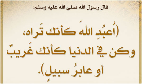 اعبد الله كأنك تراه وكن في الدنيا كأنك غريب أو عاب