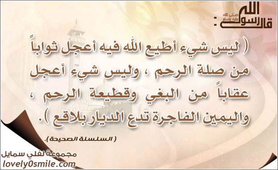ليس شيء أطيع الله فيه أعجل ثواباً من صلة الرحم ولي