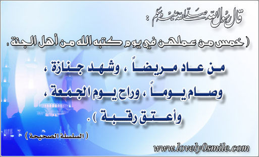 خمس من عملهن في يوم كتبه الله من أهل الجنة من عاد