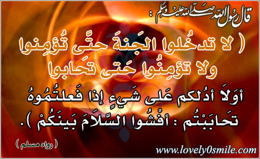 لا تدخلوا الجنة حتى تؤمنوا ولا تؤمنوا حتى تحابوا أ