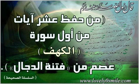 من حفظ عشر آيات من أول سورة الكهف عصم من فتنة الدج