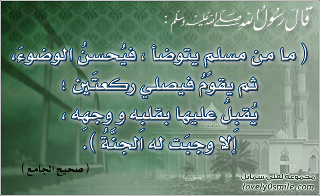 ما من مسلم يتوضأ فيُحسن الوضوء ثم يقوم فيصلي ركعتي
