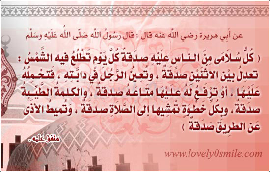 كل سلامي من الناس عليه صدقة كل يوم تطلع فيه الشمس