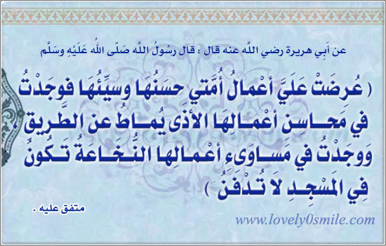 عرضت علي أعمال أمتي حسنها وسيئها فوجدت في محاسن أع
