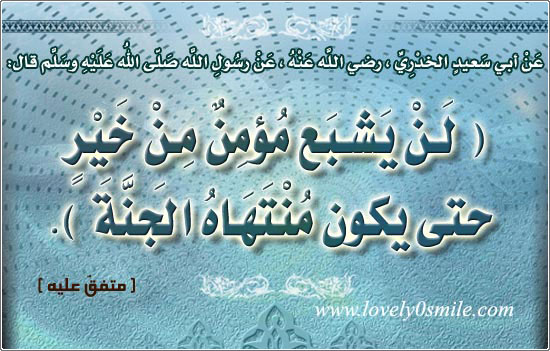 لن يشبع مؤمن من خير حتى يكون منتهاه الجنة