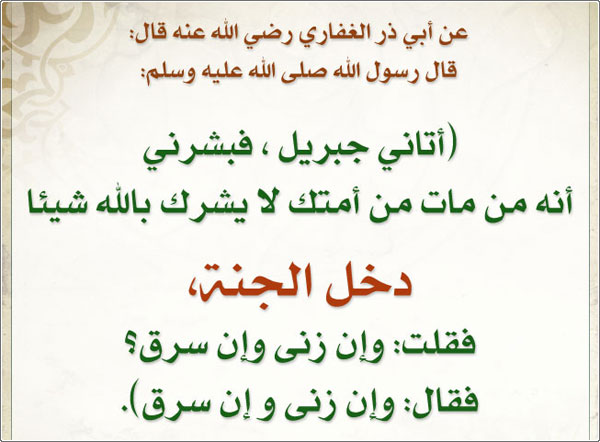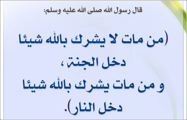 من مات لا يشرك بالله شيئاً دخل الجنة ومن مات يشرك