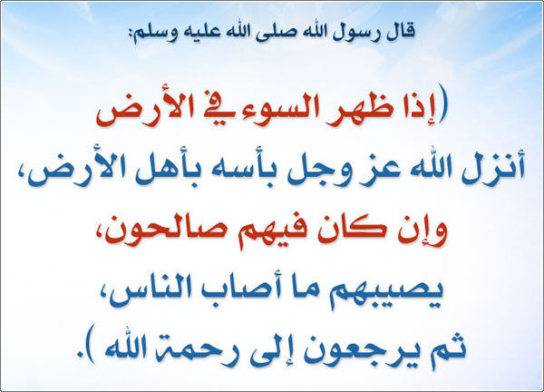إذا ظهر السوء في الأرض أنزل الله عز وجل بأسه بأهل