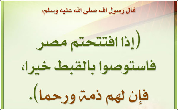 إذا افتتحتم مصر فاستوصوا بالقبط خيرا فإن لهم ذمة و