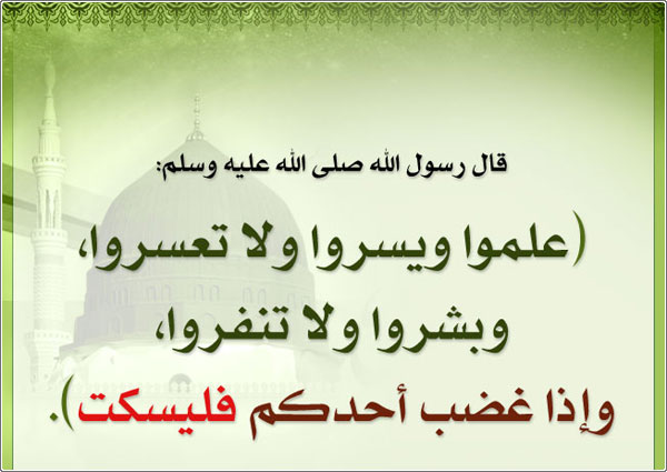 علموا ويسروا ولا تعسروا وبشروا ولا تنفروا وإذا غضب