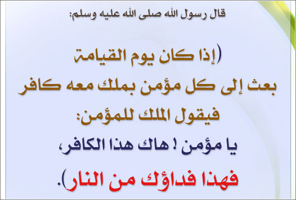 إذا كان يوم القيامة بُعث إلى كل مؤمن بملك معه كافر