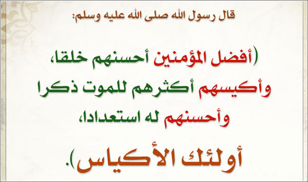 أفضل المؤمنين أحسنهم خلقا وأكيسهم أكثرهم للموت ذكر