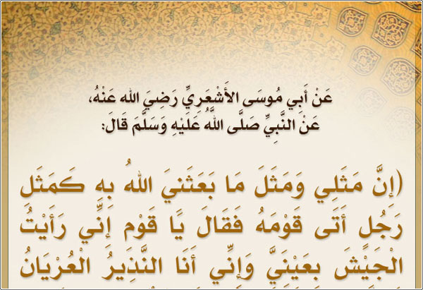 إن مَثَلي ومَثَل ما بعثني الله به كمثل رجل أتى قوم