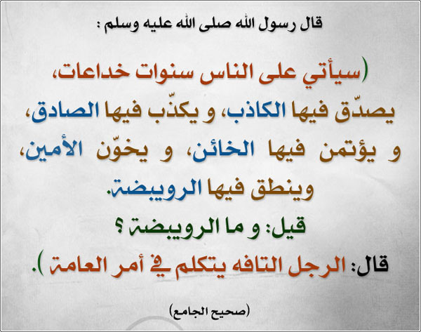 سيأتي على الناس سنوات خداعات يُصَدَّقُ فيها الكاذب