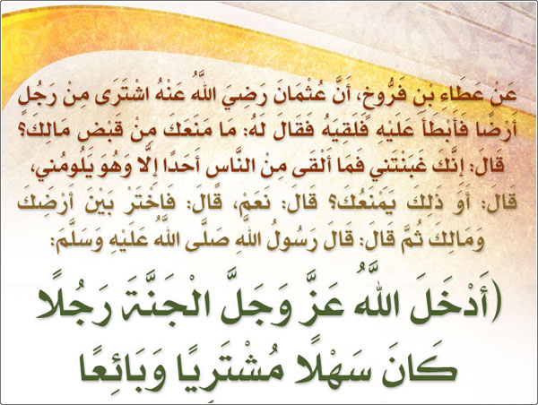 أدخل الله عز وجل الجنة رجلاً كان سهلاً مشترياً وبا
