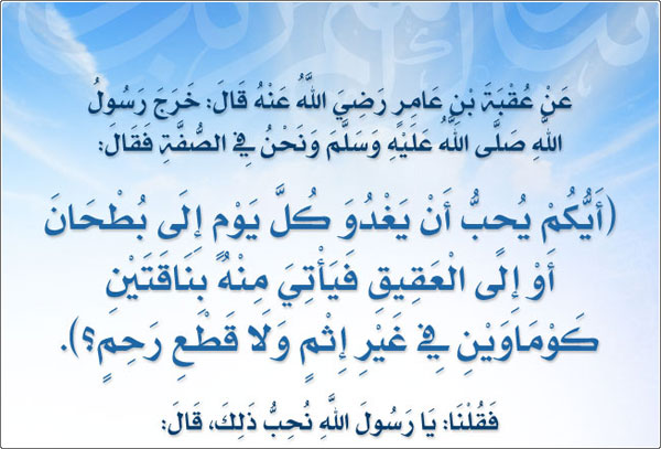 أيكم يُحب أن يغدو كل يوم إلى بطحان أو إلى العقيق ف