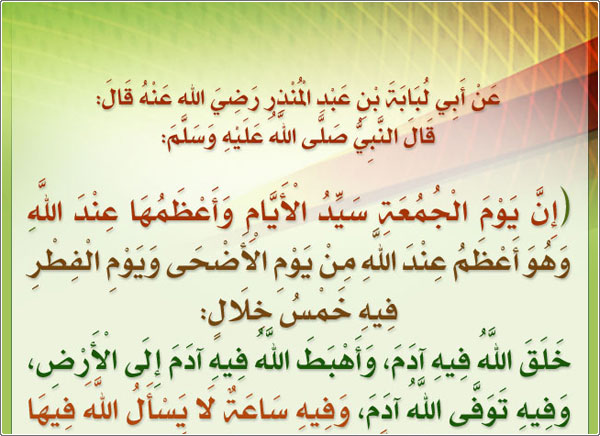 إن يوم الجمعة سيد الأيام وأعظمها عند الله وهو أعظم
