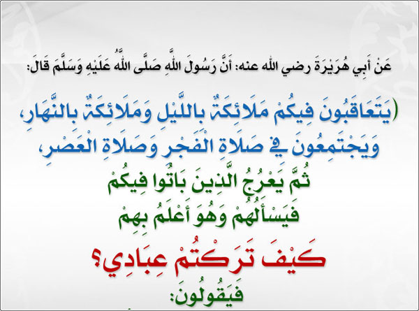يتعاقبون فيكم ملائكة بالليل وملائكة بالنهار ويجتمع