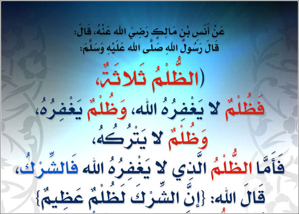 الظلم ثلاثة فظلم لا يغفره الله وظلم يغفره وظلم لا