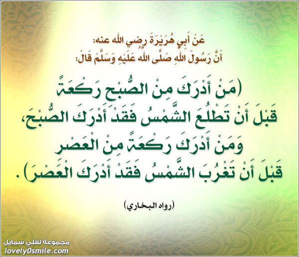 من أدرك من الصبح ركعة قبل أن تطلع الشمس فقد أدرك ا