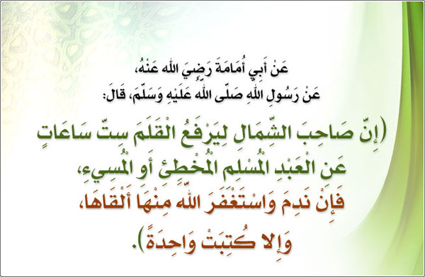 إن صاحب الشمال ليرفع القلم ست ساعات عن العبد المسل