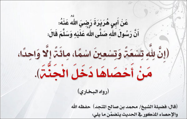 إن لله تسعة وتسعين اسماً مائة إلا واحداً من أحصاها
