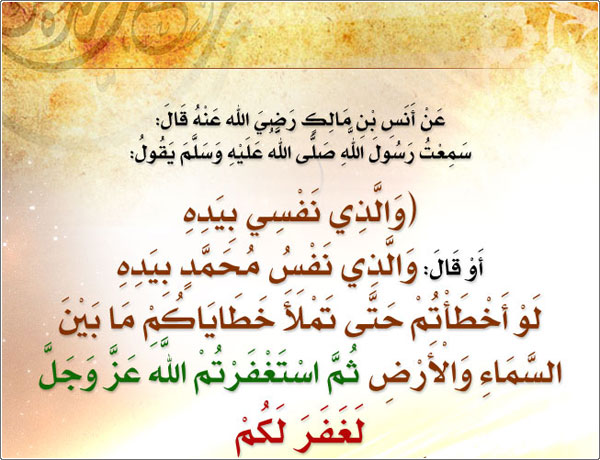 والذي نفسي بيده لو أخطأتم حتى تملأ خطاياكم ما بين