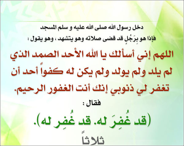 اللهم إني أسألك يا الله الأحد الصمد الذي لم يلد ول
