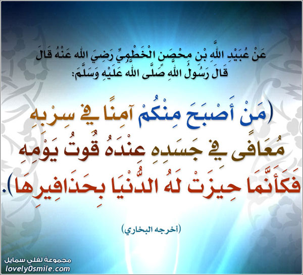 من أصبح منكم آمناً في سربه مُعافى في جسده عنده قوت