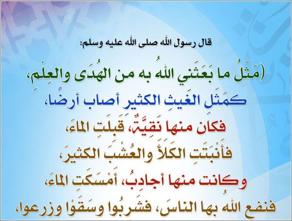 مثل ما بعثني الله به من الهدى والعلم كمثل الغيث ال