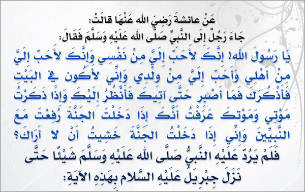 تلا رسول الله عليه السلام: للذين أحسنو الحسنى وزيا