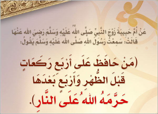 من حافظ على أربع ركعات قبل الظهر وأربع بعدها حرَّم