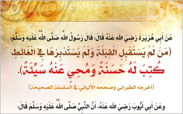 من لم يستقبل القبلة ولم يستدبرها في الغائط كُتِب ل