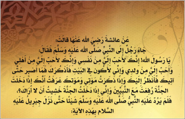 ومن يطع الله والرسول فأولئك مع الذين أنعم الله علي
