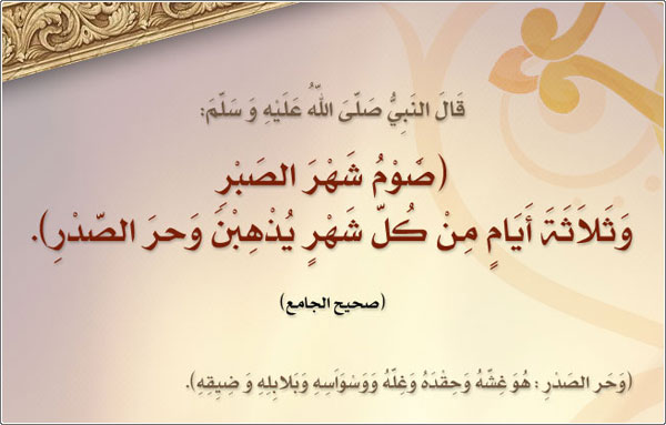 صومُ شهرِ الصبرِ وثلاثةِ أيامٍ من كلِّ شهرٍ يُذْهِ