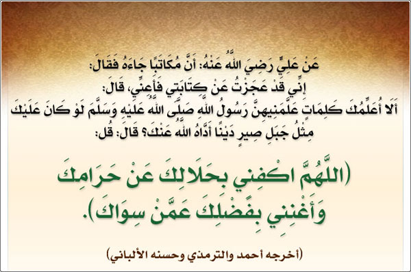 اللهم اكفني بحلالك عن حرامك وأغنني بفضلك عمن سواك