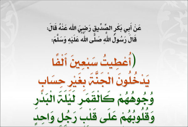 أعطيت سبعين ألفا يدخلون الجنه بغير حساب وجوههم كال