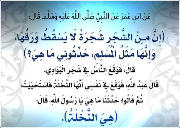 إن من الشجر شجرة لا يسقط ورقها وإنها مثل المسلم حد
