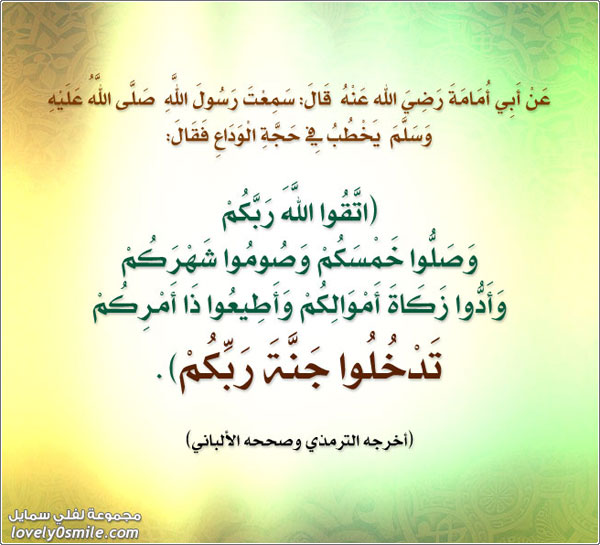اتقوا الله ربكم وصلوا خمسكم وصوموا شهركم وأدوا زكا